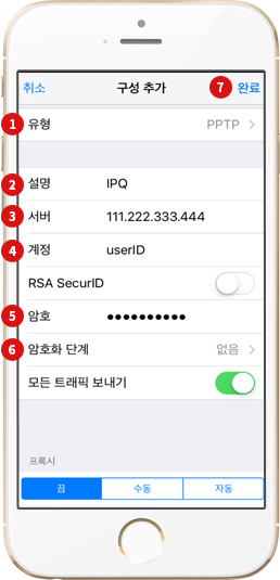 IOS10버전 이상의 경우 PPTP 방식의 VPN 접속이 불가합니다.